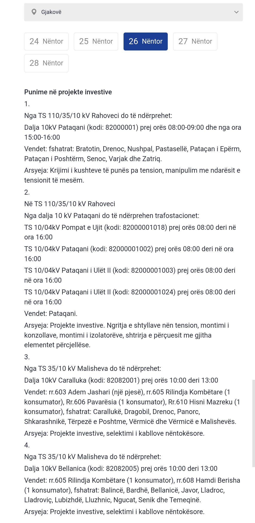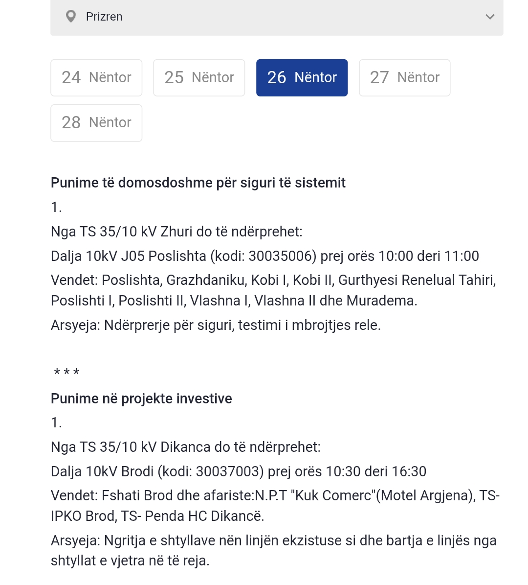 Këto vende të Kosovës do të mbesin pa rrymë sot