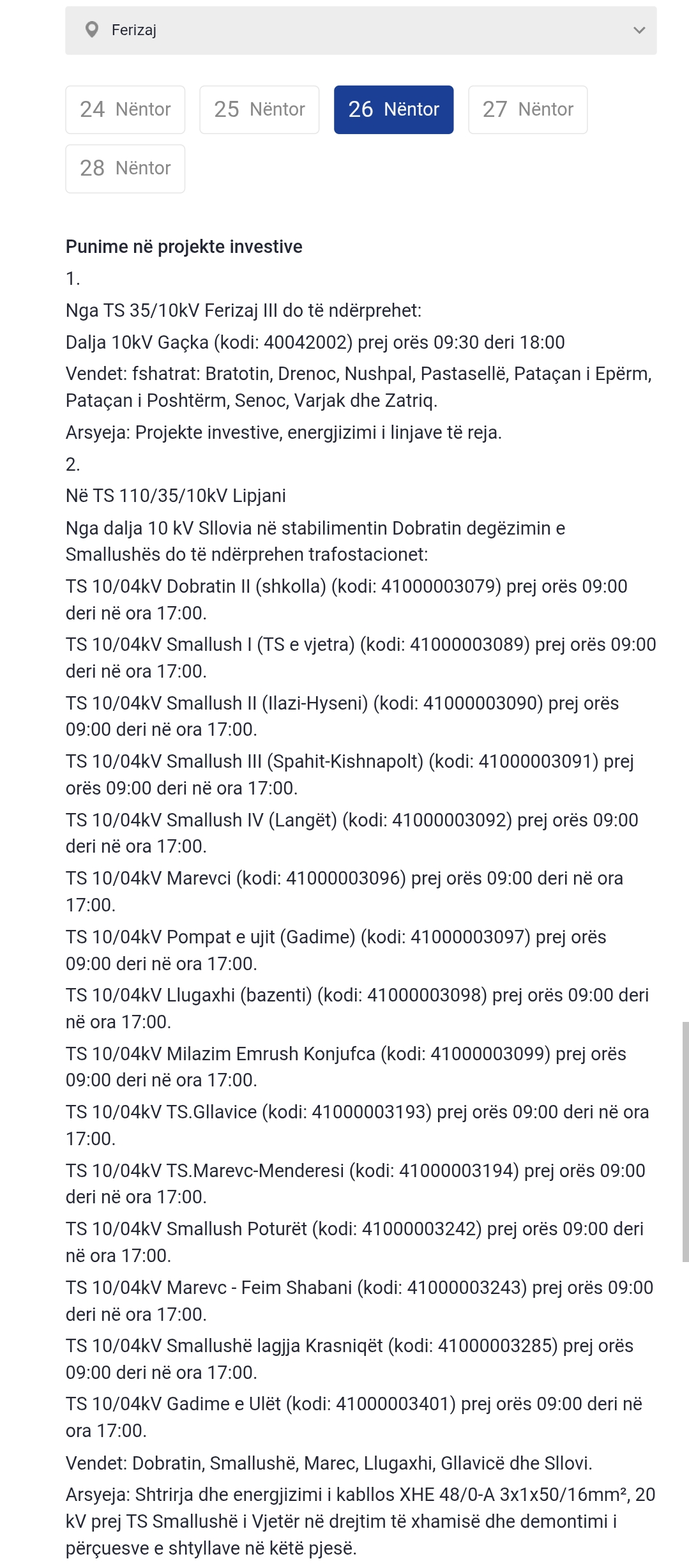 Keds ka njoftuar lidhur me vendet të cilat do të mbesin pa rrymë sot gjatë ditës, më poshtë lista e plotë e qyteteve dhe fshatrave përkatëse ku nuk do të ketë rrymë.