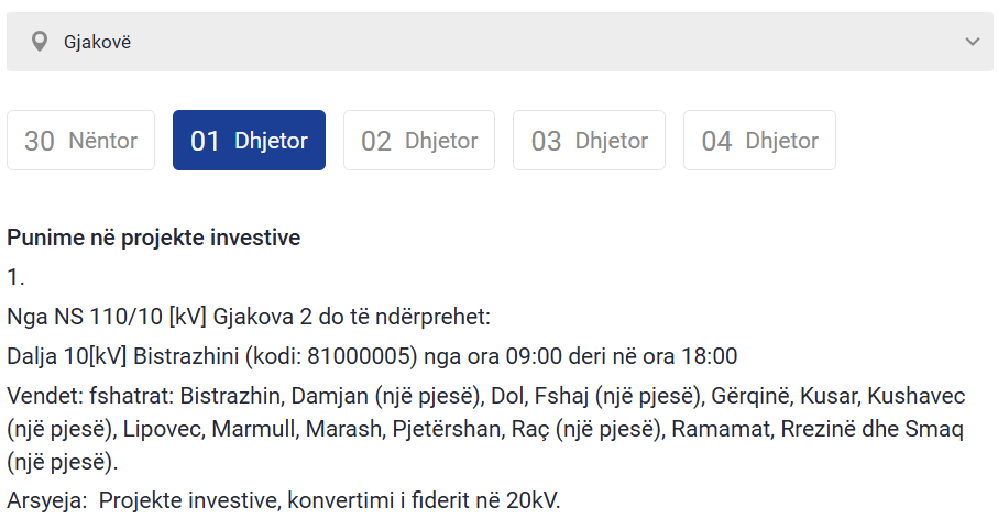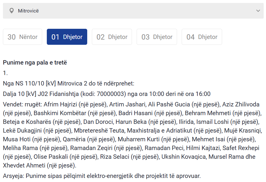 Këto vende të Kosovës do të mbesin pa rrymë nesër