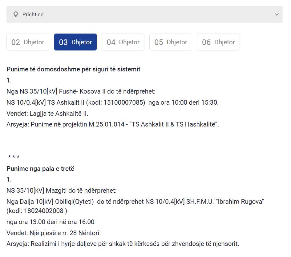 Këto vende të Kosovës do të mbesin pa rrymë nesër (e mërkurë)