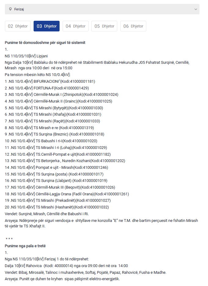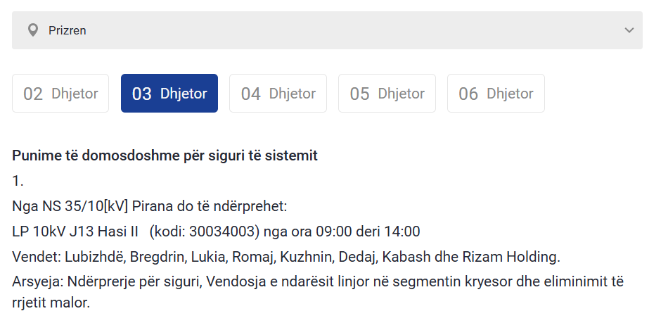 KEDS ka njoftuar se disa zona në Kosovë do të mbesin pa energji elektrike nesër, për shkak të punimeve të domosdoshme për siguri të sistemit.