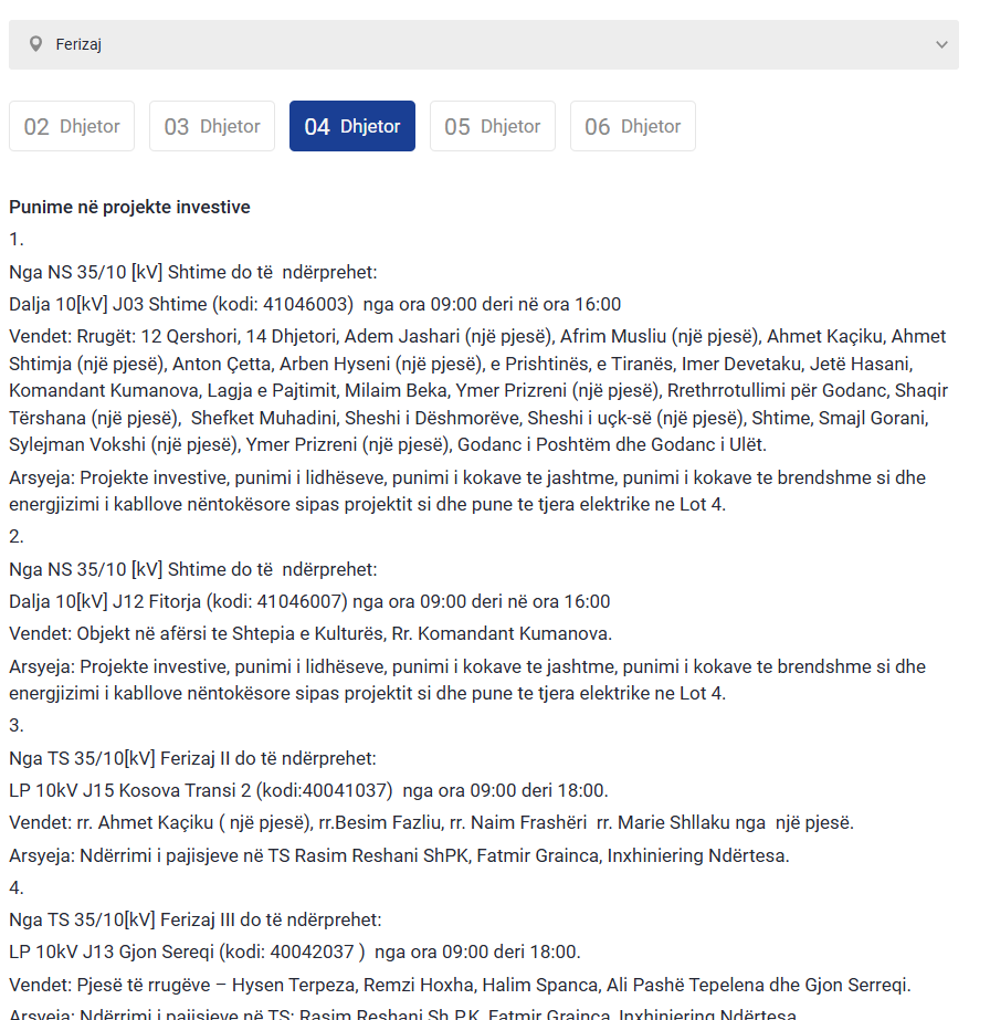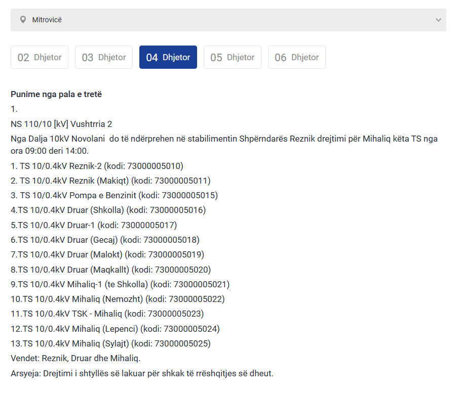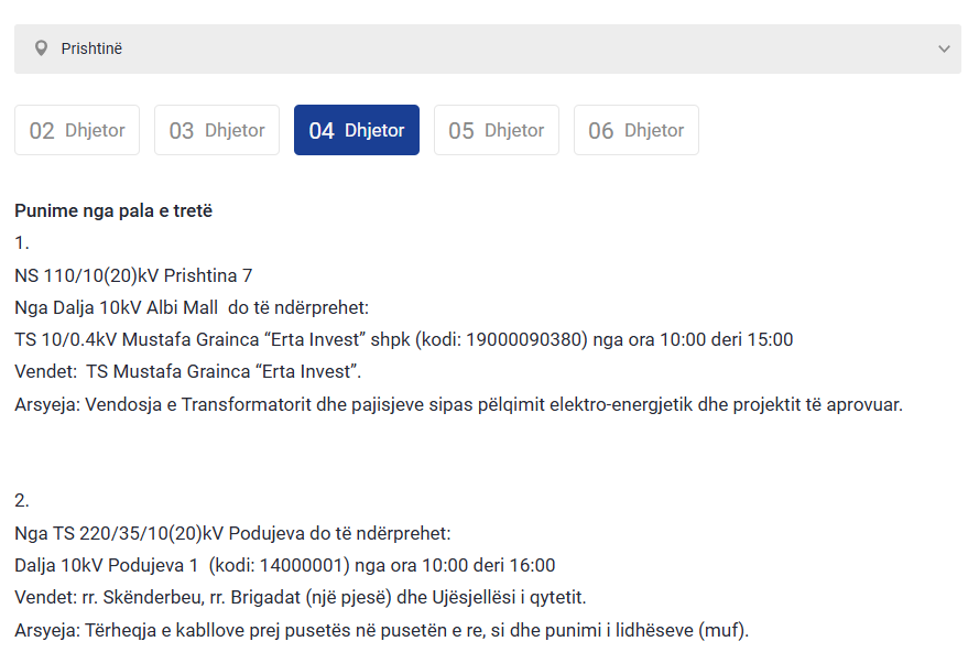 Këto vende të Kosovës do të mbesin pa rrymë nesër (e enjte)