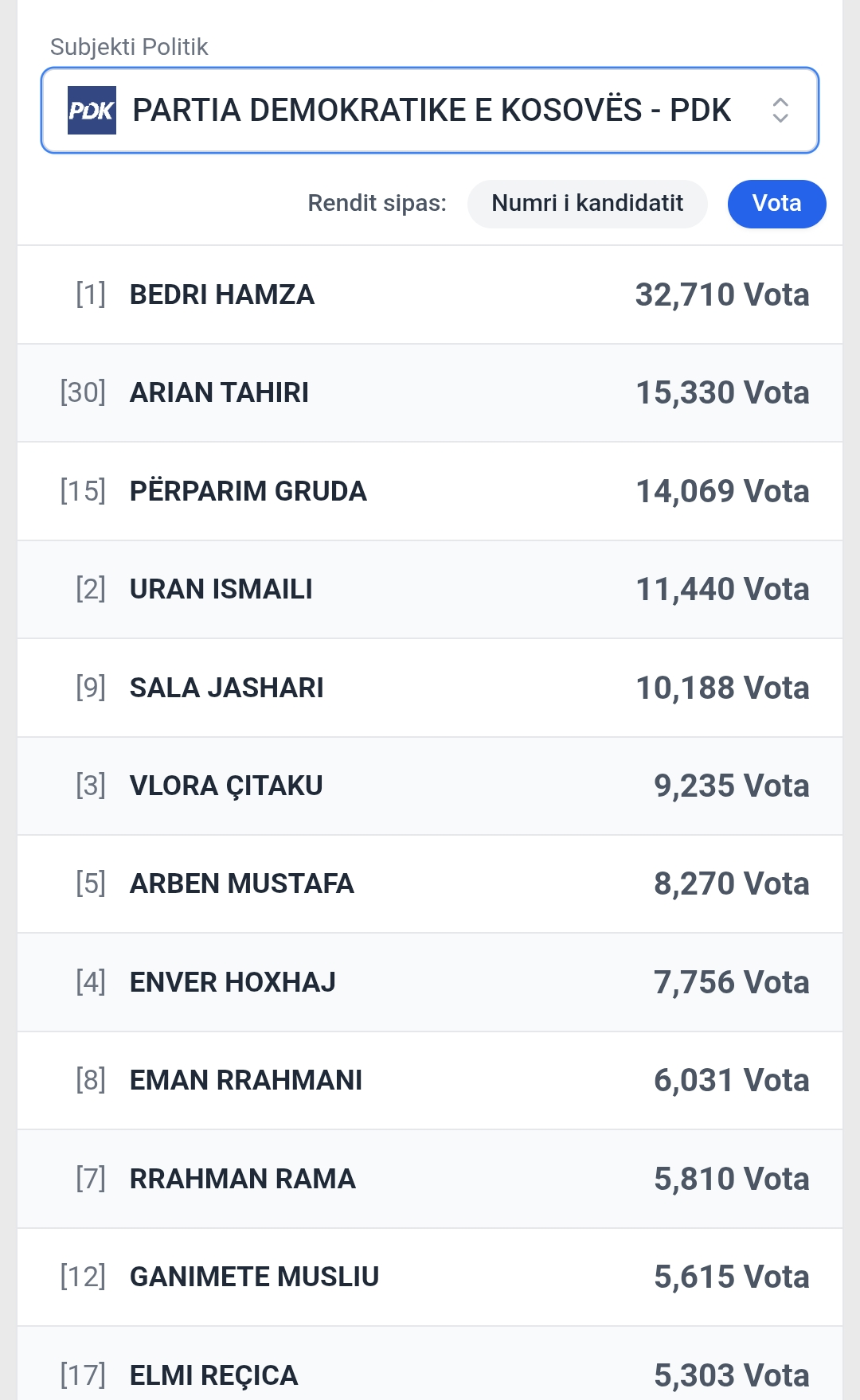 Mbi 22% të numëruara, këta janë më të votuarit e PDK-së