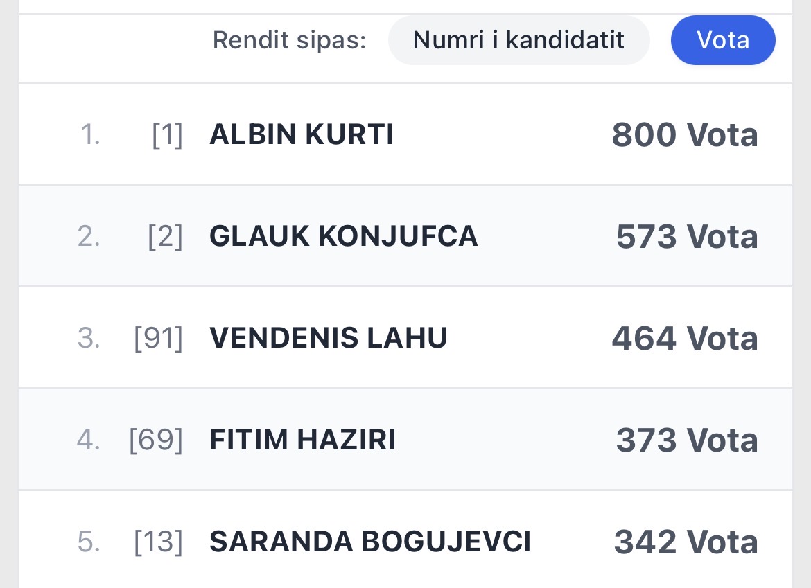 Më poshtë më të votuarit në Gllamnik të Podujevës: