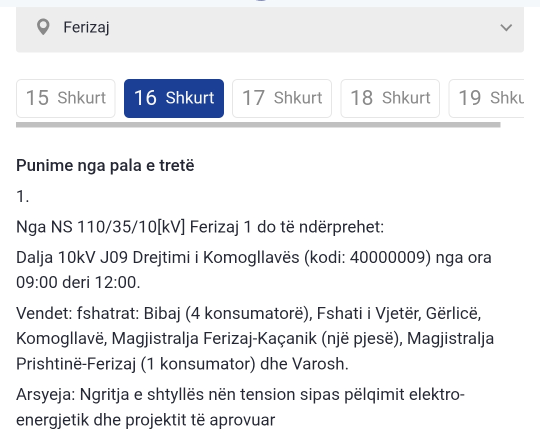 Këto vende të Kosovës do të mbesin pa rrymë (e hënë, 16.02.2026)