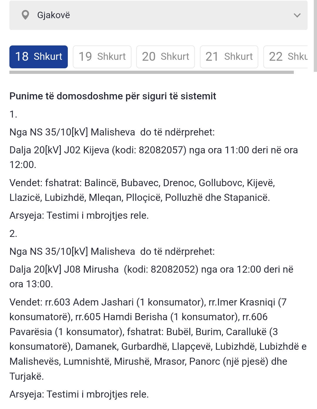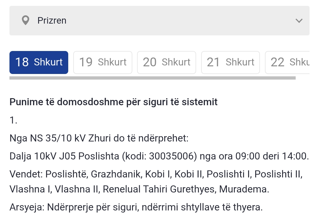 Këto vende të Kosovës do të mbesin pa rrymë (e mërkurë, 18.02.2026)